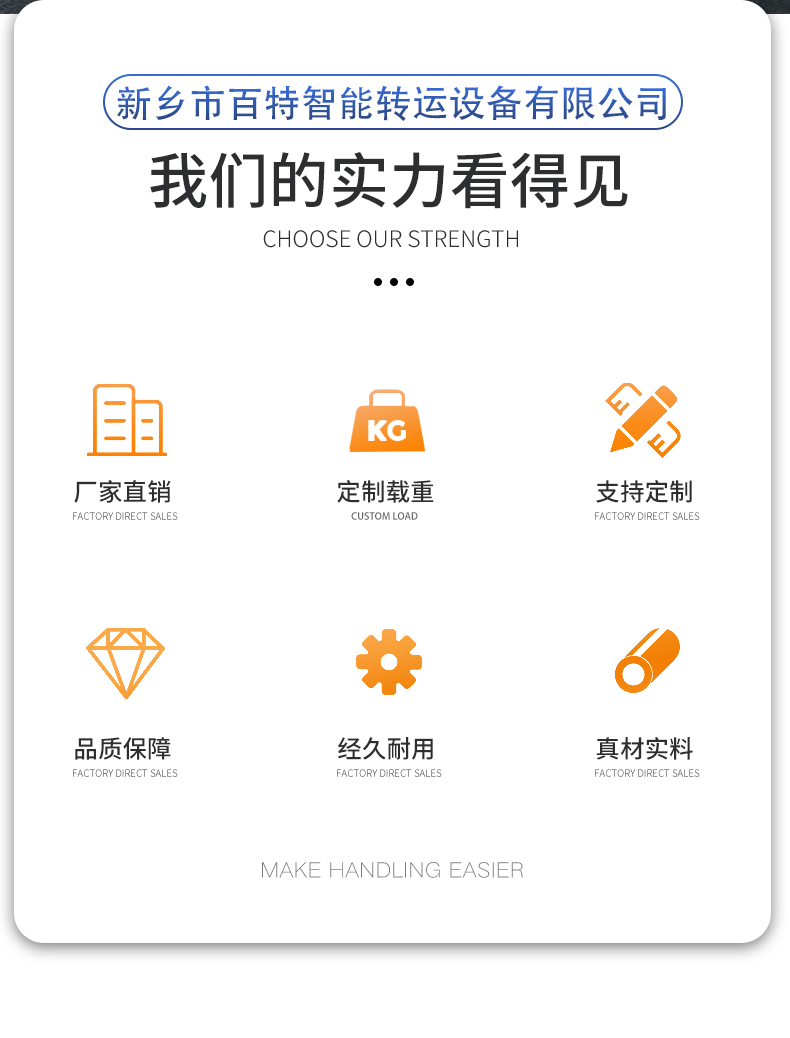 2.高效率:操作簡單,裝卸貨快捷,可大幅提高搬運效率,節(jié)省人力成本。